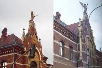 Фрагмент фасада с обильным и разнообразным декором: кариатида, различные маски, лепные барельефы...